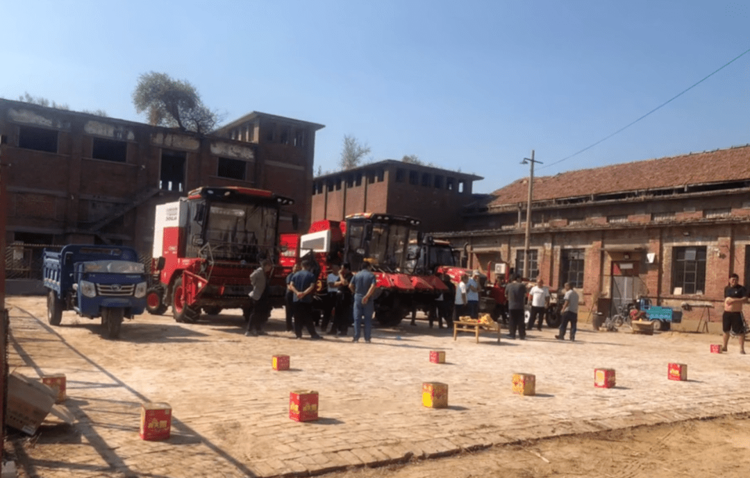 許書梅接回中聯(lián)收獲收獲機(jī)舉辦的一個(gè)小慶祝儀式